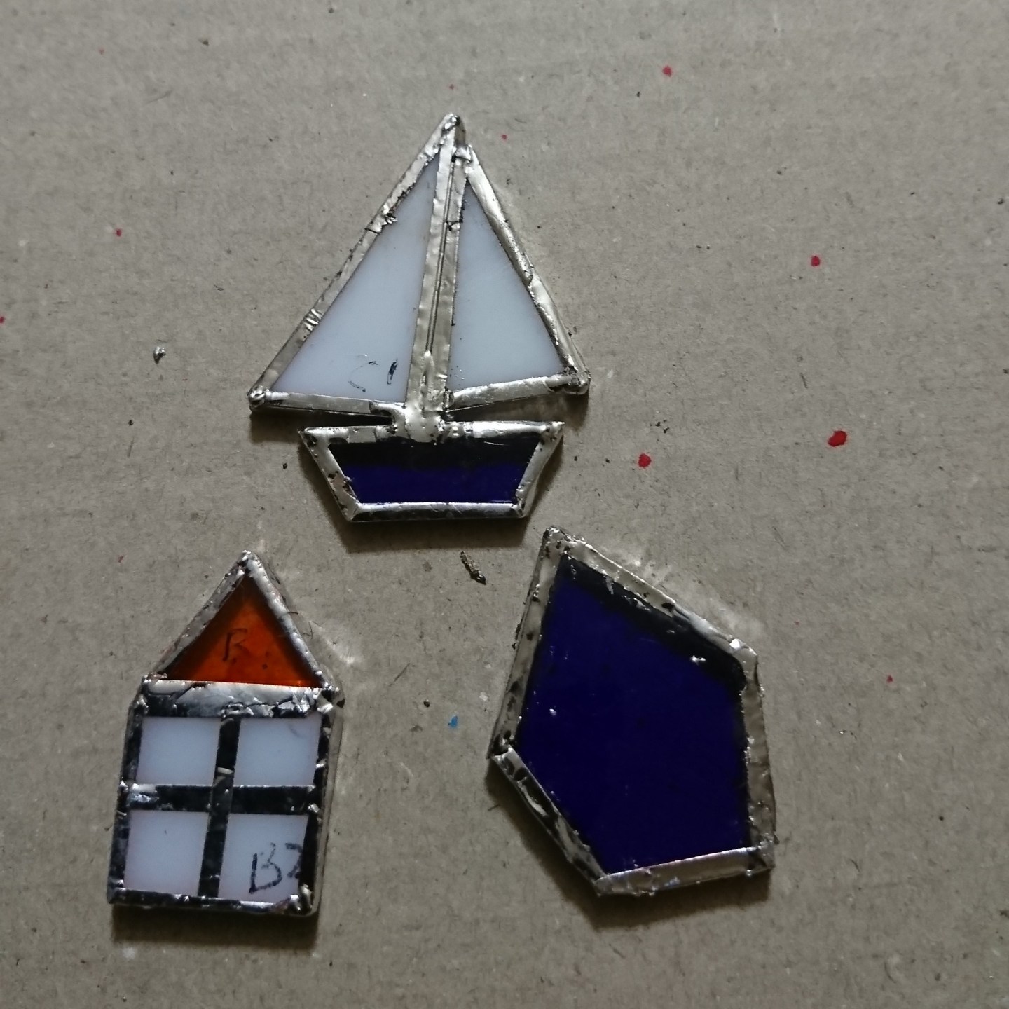 なんか、ハンダが綺麗じゃない。ゴツゴツゴロゴロ焦げ焦げ。これは回数やってみないとダメかなぁ。手元にフラックスもカッパーテープもハンダも残っているので、何かステンドグラスの材料になるものを探しました。市販のガラスブロックとか厚さがあってテープで巻けなそうです。